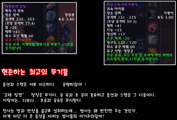 (비교대상이 전사 쪽으로 너무 치우치긴 했으나 타 직업 군에 비해 저항세팅에 강화된 건 사실이기에 이 자리를 빌어 전사님들께 양해를 구한다)