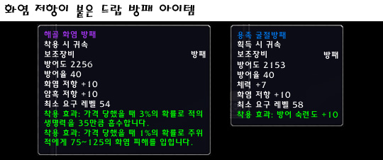 유저들이 단지 멋(간지 & 뽀대)을 위해 사용하는 방패, 화염 저항과 암흑 저항이