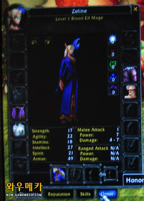 ▲블러드엘프 마법사의 초기 능력치. 지능이 높다