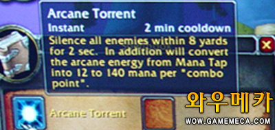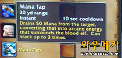 마나 탭은 재사용 대기시간이 불과 10초밖에 안되며 목표물의 마나를 흡입하여 15분간 지속되는 버프를 생성시킨다. 최대 3번까지 중첩되는 이 버프는 아케인 토런트를 발동시킬 때 캐릭터의 직업에 따라 분노나 마나를 일정량 회복시켜주는 역할을 한다.