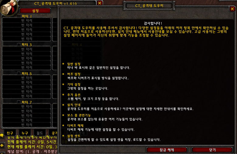 그럼, 공격대 도우미의 기본적인 설정 방법과 주로 사용하는 유용한 기능들에 대해 소개하겠습니다.