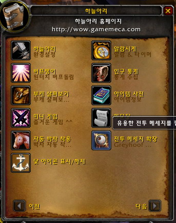 기능에 대해 간단히 설명하자면 화면상에 각종 정보가 담겨진 메시지가 스크롤되어 올라가는 기능입니다. 복잡한 인터페이스보다 화면에 필요한 메시지가 바로바로 표시된다는 점이 공격대는 물론 PvP에서도 상당한 강점을 가진 애드온입니다.