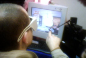 컴퓨터 화면에서 TV홈쇼핑 비슷하게 PDA를 선전하고 있었다. 그냥 보기엔 별거 없는 방송인데 저 특수안경을 쓰고 모니터를 바라보면 PDA가 화면에서 튀어나와 자신의 눈앞에 입체적으로 펼쳐지는 것이다.