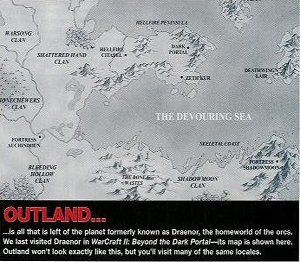 아래 스크린 샷은 WOW맵 뷰어로 뽑아낸 화면이다. 아직 까지는 아웃랜드의 대략적인 형태만 보여질 뿐 구체적으로 구현된 버전은 나오질 않았다.