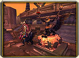 그것은 기나긴 여정이었다. 감시자와 시간의 동굴, 청동용과 용기대장, 꿈틀거리는 곤충 소굴, 홀의 파편들과 그것을 지키는 자들, 그리고 고대 용에 이르기까지... 어느 누구도 자신의 책임을 다하기 위해 한치의 물러섬이 없었다. 이들은 권력과 지혜, 심지어 무자비한 힘까지 동원하여 자신의 임무를 완수하고자 고군분투했다. 지금까지의 모든 노력은 단 하나의 물건을 얻기 위한 것이었다. 천 년의 세월 끝에 마침내 재결합된, 바로 지금 쉬로마의 손에 들려 있는 이것. 흐르는 모래의 홀을 말이다. 결국, 모든 행로의 끝은 실리더스의 스카라베 성벽의 문으로 이어져 있었다. 오래 전 홀이 산산조각 났던 바로 이곳으로 말이다. 쉬로마는 하늘을 올려다보며 용들이 하늘을 뒤덮던 때를 떠올렸다. 당시 끝없이 밀려 들어오는 퀴라지와 실리시드가 나이트 엘프의 군대를 덮쳐 한 가닥의 희망도 보이지 않던 암흑의 시간이었다. 끔찍했던 몇 개월 동안 어느 누구도 살아남지 못하리라 생각했지만 쉬로마는 여기 이렇게 살아 남아 그때 `흐르는 모래의 전쟁`에서 그들을 구한 신성한 장벽 앞에 서 있다...