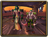 잠긴 나이트 엘프 하나가 서 있다. 그녀를 바라보는 동료들의 눈빛에는