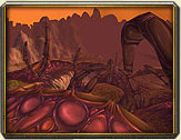 쉬로마는 불기둥 마루에서 망을 보는 판드랄의 보습을 바라보았다. 그의 모습 뒤로 화산 분출구의 열기가 뿜어져 나오고 있었고, 먼저 세상을 등진 자식을 가진 부모만이 헤아릴 수 있는 깊은 고통과 슬픔을 감춰주는 듯 마치 가면처럼 주황색 용암이 그의 얼굴을 비추고 있었다. 퀴라지의 갑작스런 후퇴... 쉬로마는 도통 그 속을 이해할 수 없었다. 그 생각에 사로잡힐수록 그녀는 분화구에 얽힌 전설을 자꾸 떠올렸다. 그 전설인즉, 원시시대 신들이 이곳에 분화구를 만들어 이곳에서 세상을 감시했다는 것이다. 그랬을지도 모른다. 그리고 아마도 여전히 이곳에 신의 은총이 내리고 있을 지도 모르는 일이다. 어쨌든 한 가지 사실만은 분명했다. 물밀듯이 밀려오는 곤충들의 공격을 막을 계획을 만들어 내지 못한다면...