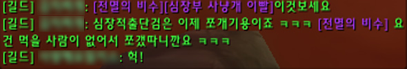 한 예로 그는 카라잔지역에서 근 한 달 동안 앵벌이를 하면서 겨우 심장적출 단검을 완성했습니다. 길드창에 자랑하고 싶어 링크시켰는데 같은 도적 길드원이 사냥개 이빨과 전멸의 비수를 링크시켜줍니다.