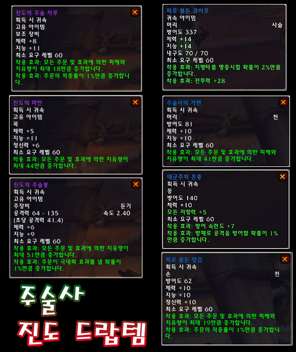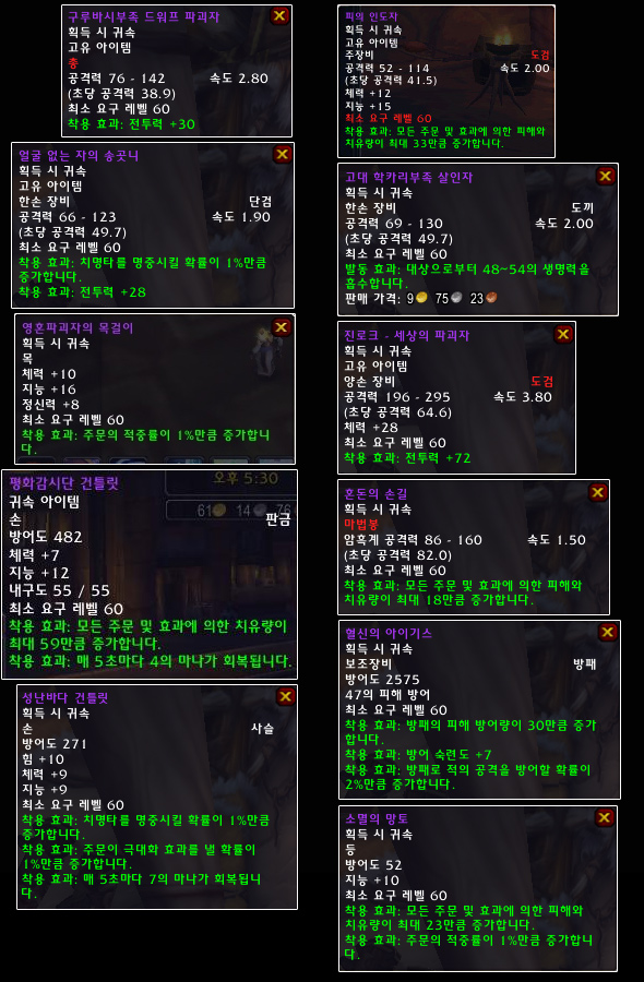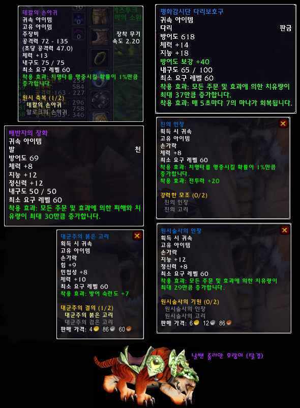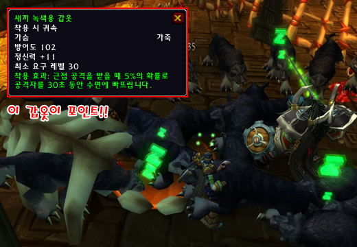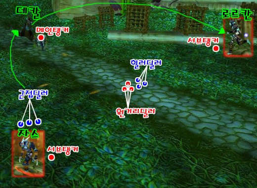 2. 이제 방어도가 높은 전사, 드루이드, 주술사(성기사)가 이 갑옷을 입고 양쪽 표범우리로 2명씩 짝을 지어 들어간다. (전사+주술사), (전사+성기사) 이런 식의 구성이 좋다. 당연히 구성을 짠 캐릭터들은 같은 파티여야 한다. 표범우리로 들어갈 플레이어들은 자신의 아이템 세팅을 체력과 방어도, 방어숙련도로 맞추자.