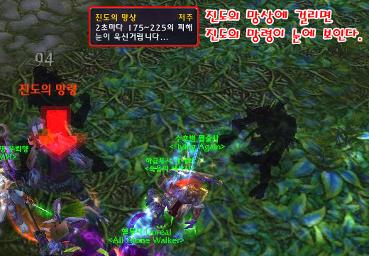 진도의 망령들은 이 디버프에 걸리지 않아도 어그로를 많이 먹은 플레이어를 공격하니 디버프가 걸렸을 때 최대한 없애도록 하자. 사냥꾼의 일제 사격의 경우는 면역이 아니니 사냥꾼이 이 디버프가 걸렸다면 이 스킬을 사용하도록 하자.