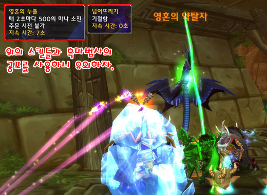 최우선 메즈 대상은 부두교 노예이다. 부두교 노예는 전투가 시작되면 어둠의 화살 및 지옥불정령을 소환한다. 인간형이니 양변이로 메즈시키자. 마법사는 댐딜보다 이들을 지속적으로 변이시키는 것에 주력하자. 부패한 무희는 이름에서 알 수 있듯이 언데드이다. 언데드 속박으로 메즈시키자. 부두교 노예와 부패한 무희를 메즈시키면 아탈라이부족 무희만 남으니 충분히 처리할 수 있을 것이다.