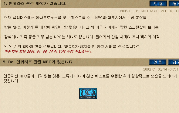 안퀴라즈에 관련된 npc를 찾을 수 없었다.  공식적인 답변은?