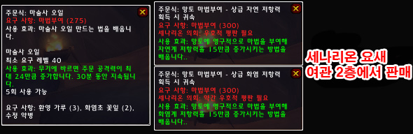 • 실리더스에 있는 세나리온 요새의 마법부여사가 새로운 마법부여 주문식을 팔게 됩니다.