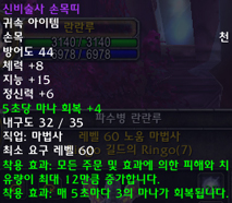 3피스 셋트 효과 : 생흡또는 마나흡수로 인해 흡수되는 양이 10% -> 15% 증가