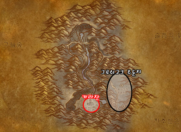 죽음의 고개에는 전 지역 중 몇 안 되는 최상급 사냥터인 카라잔이 위치하고 있다. 대부분의 서버에서는 얼라의 전용 사냥터로 애용되고 있고 있지만 인구비율이 비슷하거나 호드가 더 많은 서버에서는 피 터지는 전쟁이 일어나는 지역이다.