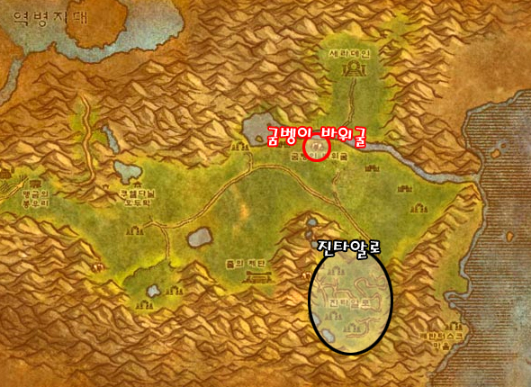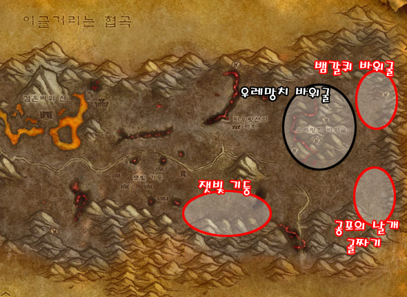 이곳은 마라우돈, 혈투의 전장을 제외하고 유령 버섯을 얻을 수 있는 굼벵이 바위굴이 있는 지역이다. 그 외 쓸만한 약초들이 필드에 널려 있어서 약초채집을 배운 유저라면 짭짤하게 돈을 벌 수 있다.