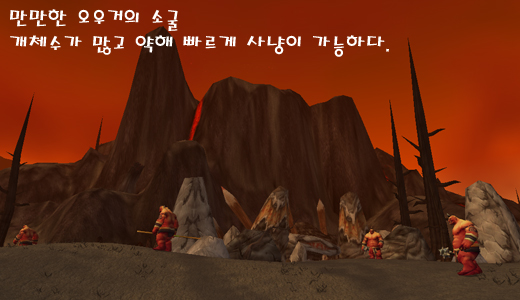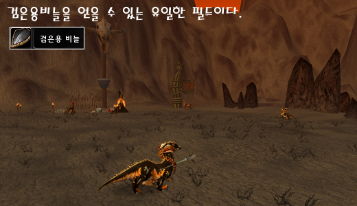 퀘스트를 완료한 이후 이곳을 찾는 유저는 대단히 적은 편이다. 간혹 광맥을 캐기 위해 돌아다니는 유저만 보일 뿐.... 하지만 이곳에도 사냥을 할만한 좋은 자리가 있다. 인던을 제외하고 검은용 비늘을 얻을 수 있는 곳은 불타는 평원밖에 없다.