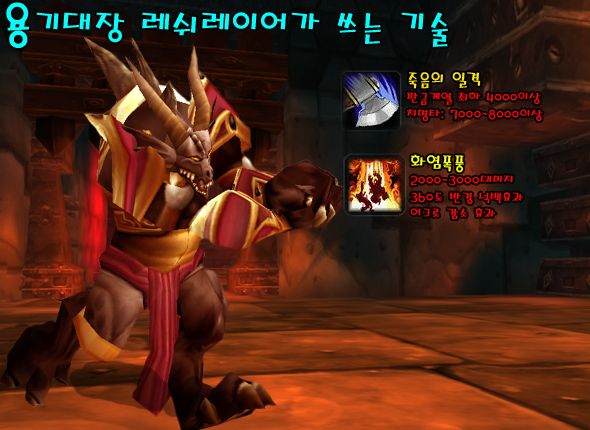 용기대장 레쉬레이어의 공격패턴은 죽음의 일격과 화염폭풍밖에 없기 때문에 지극히 단순하다.