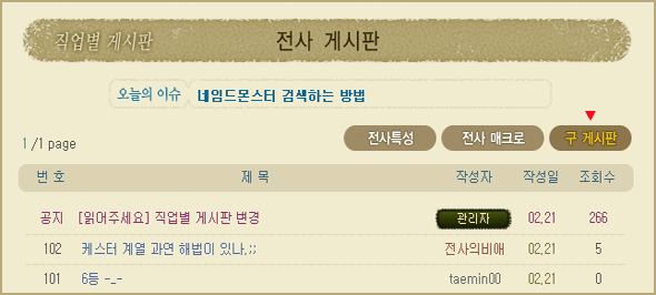 예전 직업별 게시물들을 보기 원하는 분들은 해당 직업 페이지 "구 게시판" 버튼을 클릭하시기 바랍니다.
