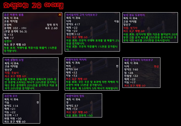 레이드에 필요한 각종 화염 저항 아이템들(클릭)