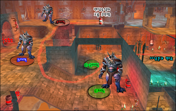 고룡 3인방을 잡을 때 주의 점은 청동과 녹 속성 때문에 가능한 멀리 떨어져서 잡는 것이 포인트다. 이리저리 날뛰다가 발구르기라도 걸리면 힐타이밍을 놓쳐 순식간에 전멸하기 때문에 A,B,C구역으로 나누어진 곳에서 빠르게 점사해서 잡도록 하자.