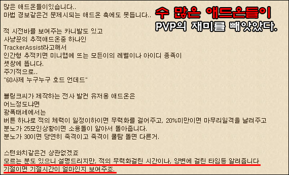 ▲ PVP의 재미를 빼앗아버린 애드온들