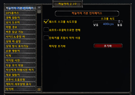 그럼 도움이 되지 않는 설명은 뒤로 제쳐두고 와우에서 애드온이란 어떤 역할을 하는지 한번 살펴보도록 하자. 위 그림 왼쪽에 다수의 메뉴들이 보일 것이다. 이게 전부 애드온이다. 그 중 몇 개의 애드온을 간단하게 설명해보도록 하겠다.