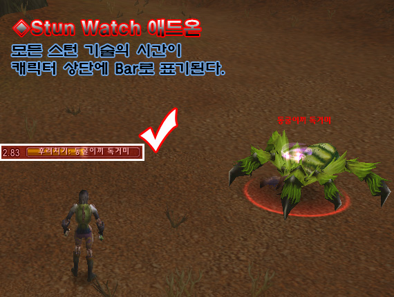 PVP를 즐기는 도적이라면 100%라고 해도 과언이 아닐 정도로 많이 사용하는 애드온인 "StunWatch" 이 애드온을 사용하면 모든 스턴기술의 지속시간이 Bar로 표시된다.
