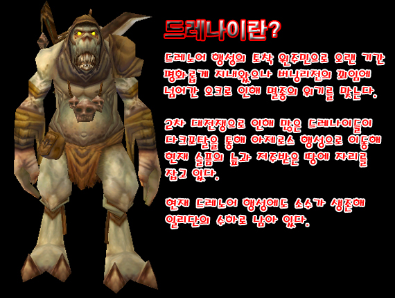 #현재 공개되어 있는 드레나이는 드레노어의 폭발로 인해 변형된 돌연변이이다.