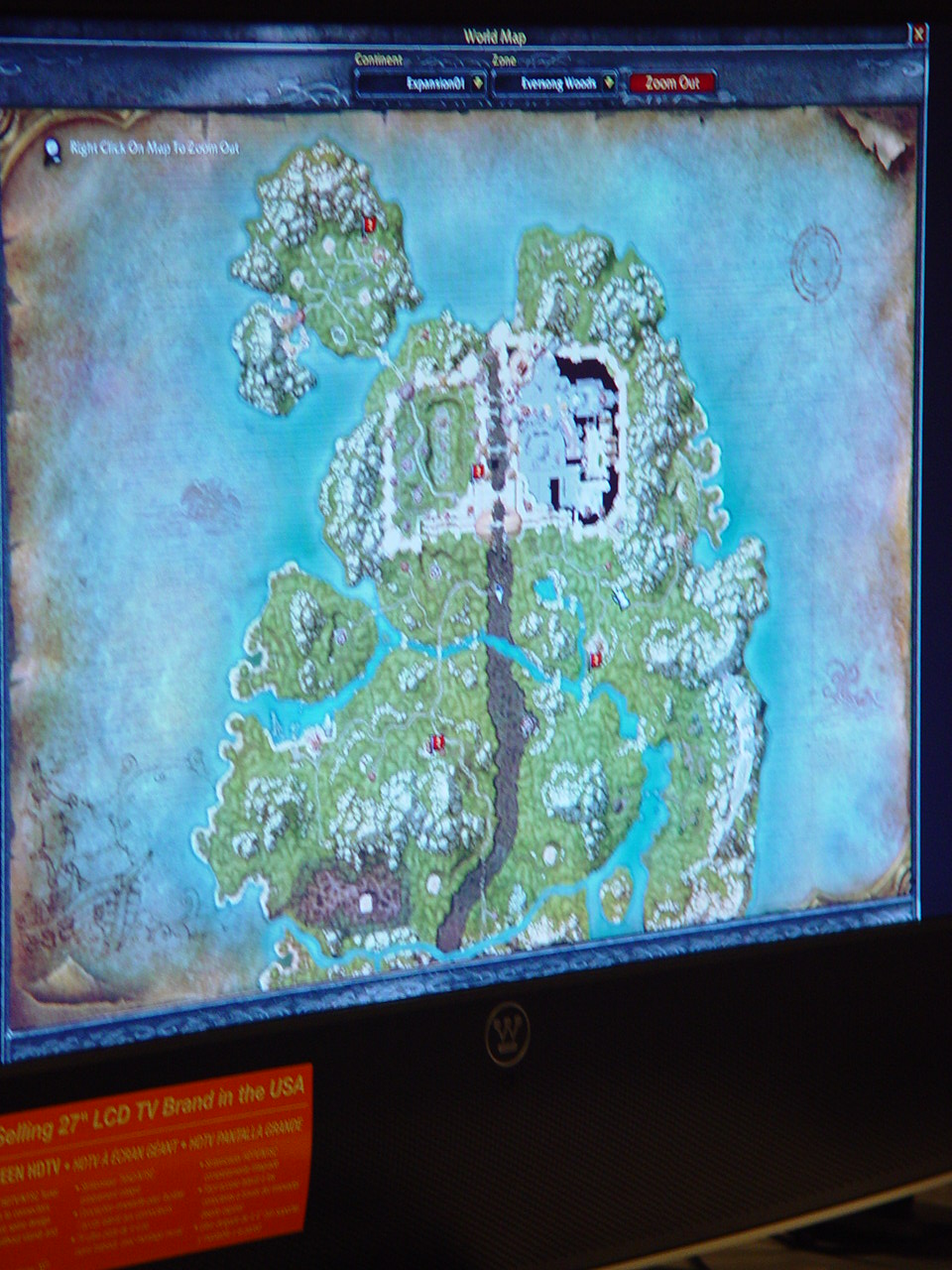 쉐인: 다른 호드 종족과는 달리 블러드 엘프의 시작 마을의 분위기는 항상 봄의 기운이 느껴지는 곳이다. 매우 밝은 이미지를 가지고 있는 곳이다. 기존의 호드 종족 진영과는 다른 분위기를 자아내고 있다. 그곳은 블러드 엘프의 수도인 실버문 시티다. (실버문 시티는 동부왕국 북동쪽, 동부 역병지대 북쪽에 위치한 쿠엘탈라스에 위치해 있다) 과거 불타는 군단이 진군해서 한번 붕괴됐던 역사적 과거를 지닌 곳이다. 현재는 재건축을 완료한 상태다. 하지만 현재 블러드 엘프는 힘의 근원을 잃은 상태이며, 이 때문에 정신적으로 방황을 겪고 있다. 그들은 블러드 엘프의 지도자 ‘캘타스 왕자’가 그들의 힘을 복구해 주기를 기다리고 있는 배경을 지니고 있다. 실버문 시티의 지도를 멀리서 보면 가운데 부분에 검은 자국이 길쭉하게 연결된 것을 볼 수 있다. |