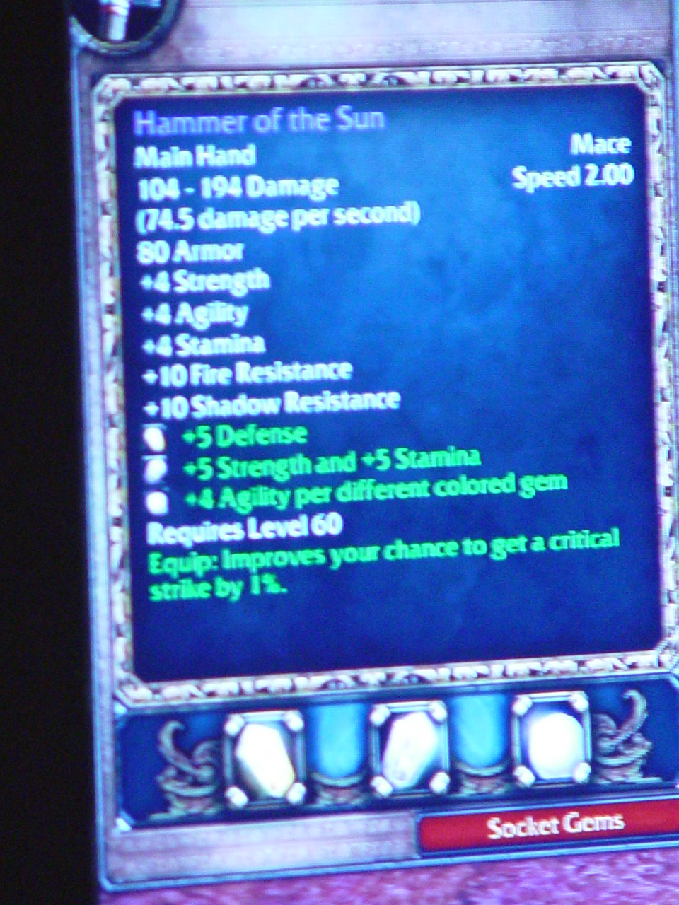 ▲소켓에 보석이 장착된 에픽 아이템. 이젠 에픽 아이템도 다 같은 에픽 아이템이 아니게 된다. |
