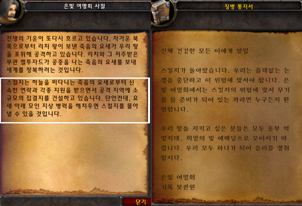 스컬지의 강력한 군주 리치킹은 자신의 야망을 위해 동부 왕국을 공격할 준비를 한다. 그리고 그 준비의 첫발로 마법사의 금기를 어기고 강령술을 연구한 달라란의 마법사 켈투자드를 꼬드겨 자신의 충성스런 부하로 만들어 버린다. 리치킹은 켈투자드를 통해 역병을 퍼트려 로데론 왕국을 멸망시키고 동부 왕국의 북쪽을 역병지대로 만들어 버린다.