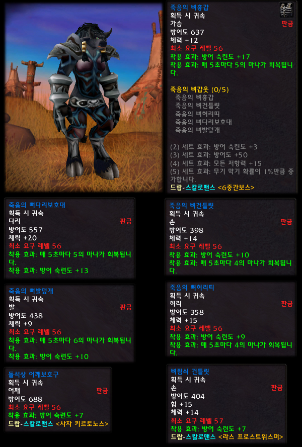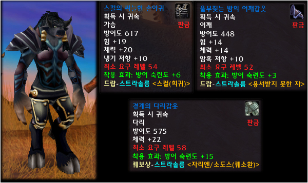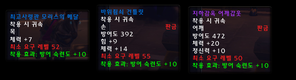 착용효과: 방어 숙련도 +3 암흑저항 +10 생명력 회복 +3 |