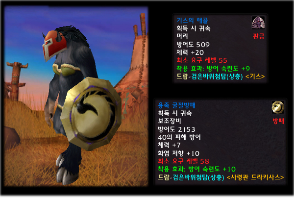 힘 +12 체력 +25 착용 효과: 방어숙련도 +9 |