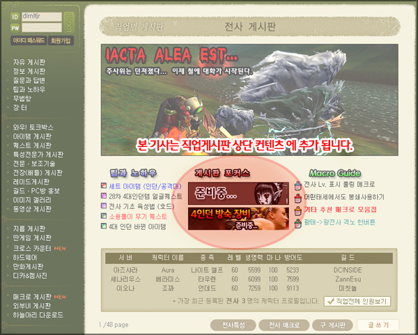 ※본 기사는 전사 게시판 상단 컨텐츠에 추가할 것이며 이 밖에 직업별로 필요한 아이템 세팅 예) 도적(치명타, 회피) 마법사(극대화, 증댐)이 필요하다고 요청해주시면 작업을 통해 지속적으로 추가해 나가겠습니다.