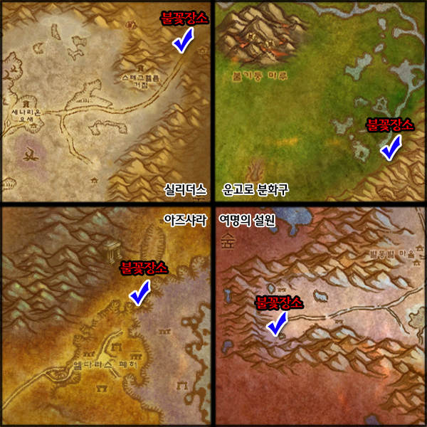 퀘스트 자체는 어려운 것이 아니지만 이동경로가 상당히 멀기 때문에 시간을 많이 잡아 먹는 퀘스트 입니다. 다행이 거의 모든 화롯불이 길옆에 있었습니다만 유독 아즈샤라 화롯불은 외딴곳에 있어서 3시간 미친듯 찾아해멧습니다(-_-;).