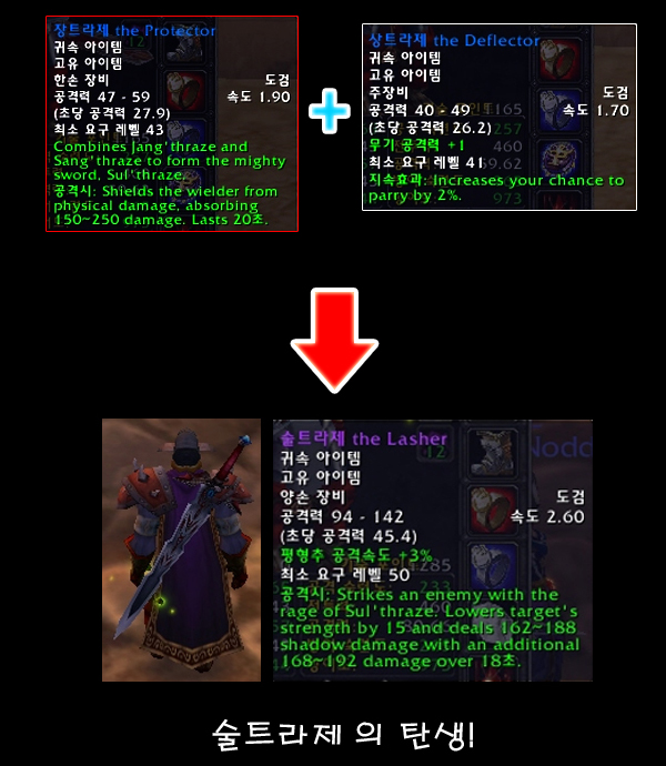 장트라제와 상트라제를 합치면 전설의 무기 술트라제가 된다는 사실! 그는 놀라움을 감추지 못하고 서둘러 이 두 검을 합체해 보았다.