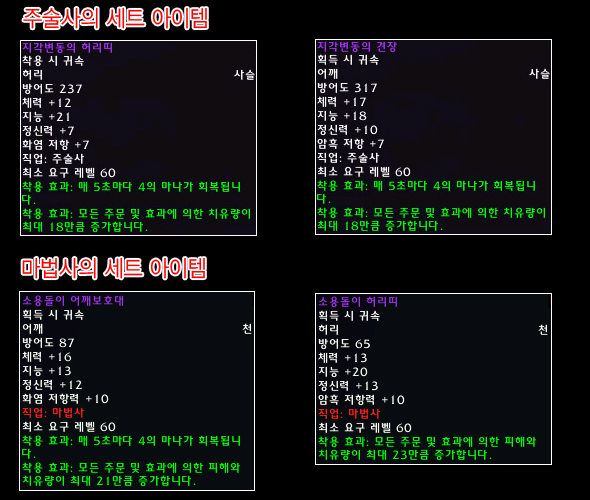 똑같은 던전에서 나오는 세트아이템임에도 불구하고 한쪽은 힐량, 한쪽은 증댐이다