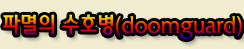 파멸의 수호병(doom guard)은 특정 몬스터를 지칭하는 용어가 아니라 지옥을 지키는 병사를 가리키는 일종의 계급?이라고 할 수 있다. 따라서 지옥의 군단병이라 칭하거나 지옥의 수호병, 파멸의 군단병 등등.. 해석하기에 따라서 여러 가지로 부를 수 있다.