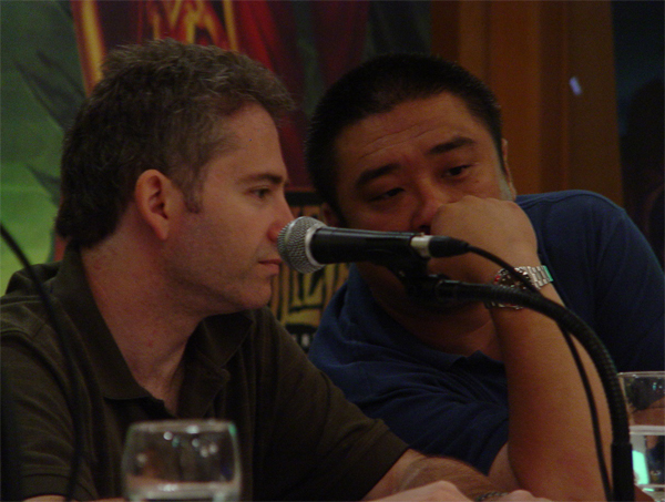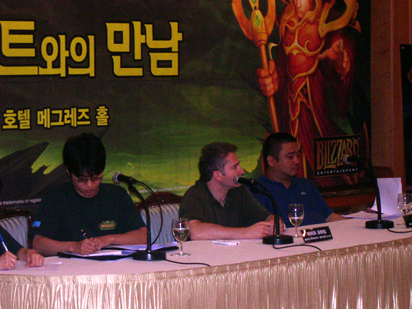 마이크 모하임 사장님(이하 마크대표)은 알렌 아담과 1991년에 블리자드를 설립한 현 블리자드 대표입니다. 작년 여름 월드와이드 인비테이셔널에 오셨던 유저분들이라면 알겠지만 블리자드 관계자들은 리드디자이너부터 시작해 사장님까지 특유의 입담으로 좌중을 사로잡는 신기한 재주가 있는 분들이죠.특히 선임디자이너 톰 칠튼은 사회자 출신이 아닐까 할 정도로 어떤 질문이 들어와도 절대 당황하지 않았으며 임기응변을 통한 대처 능력이 극에 달한 분이었습니다.