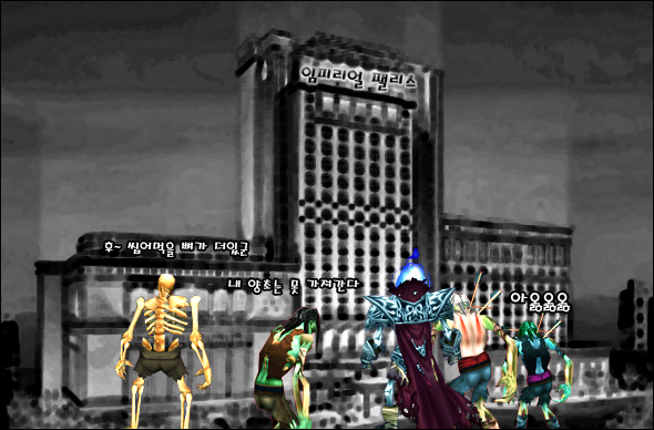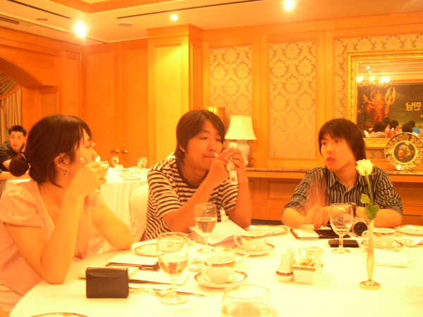 게임메카 팀이 약속장소인 호텔에 도착했을 때는 이미 그들에게서 인간의 모습을 찾아 볼 수 없었습니다. 에어컨을 찾는 찬바람의 강탈자. 굶주린 배를 움켜잡고 먹을 것을 찾아 헤메는 강남의 하이에나였죠(-_-;). 실제 사진을 공개했더라면 경악했겠지만 자체 심의 때문에 짤리고 말았네요 -.-;;