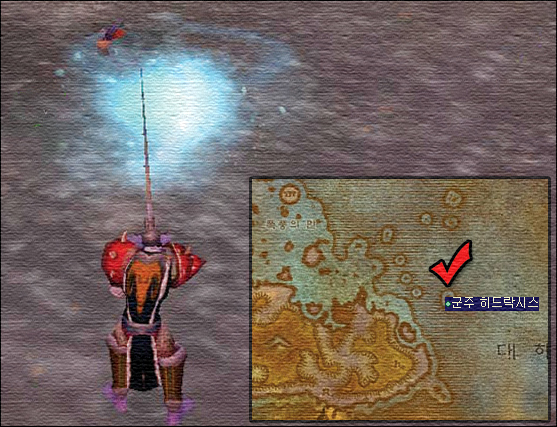 물의 군주 히드락시스가 은거하고 있는 아즈샤라의 바다에는 그의 강한 기운 탓인지 물의 정수를 낚을 수 있는 포인트가 존재한다. 정기가 흐르는 물웅덩이에 찌를 던져 넣으면 물의 정수, 물의 보주, 물의 원소를 채집할 수 있다. 하지만, 이것만 노리기엔 리젠 지역이 너무 넓은 게 단점. |