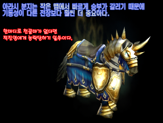 가장 중요한 준비물은 "첫째도 천골마! 둘째도 천골마!" 라고 강조하고 싶다. 그 이유는 모든 공격과 수비를 유리하게 진행하기 위해선 빠른 이동이 필수이기 때문이다. 만약 적의 거점을 공략하기 위해 이동할 때 공격자 전원이 백골마라면 거점에 도착하기도 전에 적들은 이미 모든 준비를 완료하고 대기하고 있을 것이다.