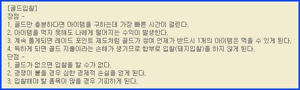 하지만 시간이 지나면 지날수록 현재의 아이템 분배 시스템에 한계를 느끼는 플레이어가 늘어나기 시작했고 그 결과 파격적인 아이템 분배 시스템이 건의 되었다. 그것은 바로 `골드입찰제`이다. 와우 토크박스 게시판을 통째로 집어삼킨 이 골드입찰제가 무엇인지 그리고 어떠한 장, 단점을 가지고 있는지 기존의 입찰제도와 비교를 통해 알아보도록 하자.