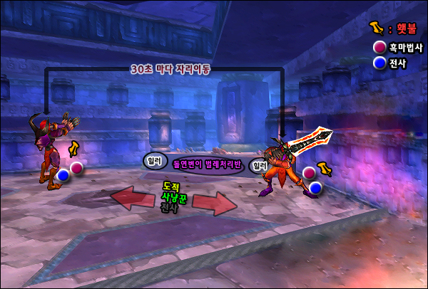 문제는 언제 바꾸냐인데 베클로어 텔레포트 때 전사는 미리 베크닐라쉬에서 최대 공격거리 유지하다가 대기하고 있던 흑마보다 밖으로 빨리 빠져나오고 흑마는 신비한 파열 안맞을 사거리 밖까지 전사보단 더 가까운 탱킹지점으로 교대가 서로 잘 이루어져야 한다.