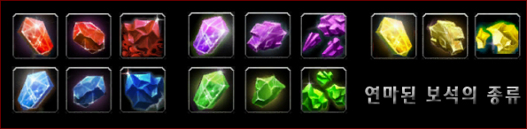 바로 보석을 가공해 소켓아이템에 박을 수 있도록 연마하는 것이죠. 가칭으로 "보석연마"라고 부르겠습니다. 연마된 보석(옵션이 달린)은 몬스터를 잡아 얻거나 보석세공을 배운 유저들이 보석연마를 통해 제작할 수 있습니다.