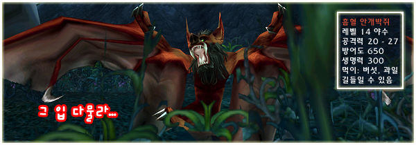 흡혈 안개박쥐는 유령의 땅에 서식한다. 저레벨 때부터 줄구룹 흡혈 박쥐와 같은 룩의 박쥐를 꼬시고 싶은 유저에게 강추이다. 공속은 2.00이다. 이녀석 역시 아직 고유 스킬을 가지고 있지 않다.
