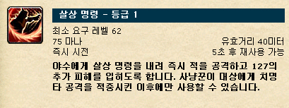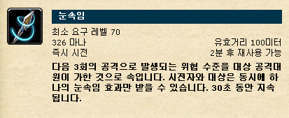 쿨타임 2분, 펫이나 파티원/공격대원에게 걸어줄 수 있음.