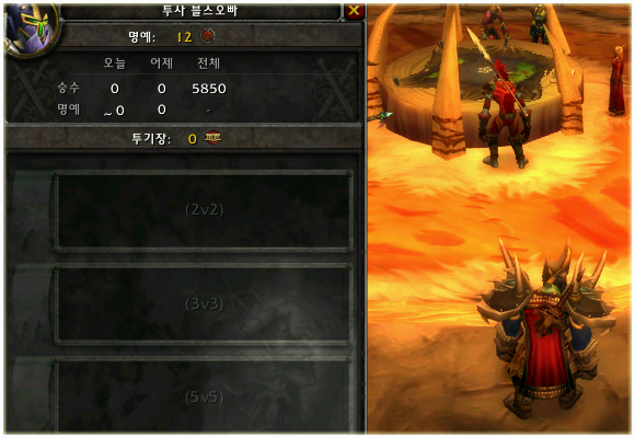 여기 획기적인 전투 시스템이 또 하나 있다. 2vs2, 3vs3, 5vs5 등 각종 소규모 전투를 체험해 볼 수 있는 투기장 시스템이 바로 그것! 투기장은 타 전장과 다르게 월등한 능력을 지닌 보상아이템이 따로 존재하며 아웃랜드 황천의 폭풍에서 구매할 수 있다. 투기장 역시 대도시에서 입장 가능하다.