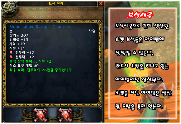 그렇다. 단지 존재만으로 가치가 있는 물건이라지만 우린 보석을 박아야 한다. 구슬이 서 말이라도 꿰어야 보배라고 했듯이 보석이 세 가방이라도 박지 않으면 한낱 인벤을 차지하는 잡템일 뿐이다.ㅡ.ㅡ;